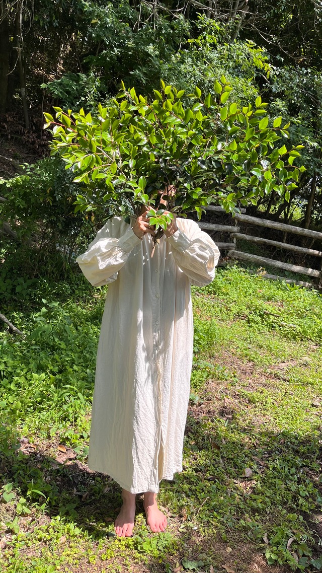 商品名:ヘンプシルク 生成り ギャザーワンピース アワオトワンピース(予約制、お届け予定は2026初夏です) 心を込めて仕立てたヘンプシルク生成りのギャザーワンピースです。柔らかな素材感と独特の光沢が魅力で、季節を問わずリラックスしたコーディネートを楽しめます。ボタンの開け閉めでワンピースとしてはもちろん、軽やかな羽織りとしても着こなせる多機能な一着です。 腰紐を使ったスタイリングのアレンジが可能で、シーンや気分に合わせて自由に楽しめるアイテムです。さりげなく女性らしさを引き立てるシルエットで、気軽なお出かけから特別な日まで幅広く活躍します。ヘンプシルクの持つ独自のナチュラルな風合いが、着る人の個性を引き出し、毎日のスタイルに新しい息吹をもたらします。 お手入れ方法も大切に。ヘンプシルクはデリケートな素材ですので、洗濯の際は優しく手洗いし、陰干しをおすすめいたします。長く愛用していただけるよう、丁寧にお手入れしてください。 サイズ 平置き寸法 着丈 120センチ(肩幅で着丈調整可能) ウエスト幅 66センチ(腰紐で調整可能) お問い合わせやサイズについてのご相談など、お気軽にご連絡くださいませ。あなたのスタイルにぴったりの一枚になることを心から願っています。